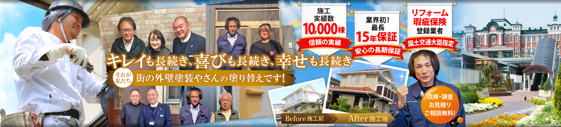 弊社は、外壁塗装工事をはじめ、外壁張り替え、外壁カバー工法、屋根葺き替え、屋根カバー工法など、外装リフォーム全般を専門とする会社です。