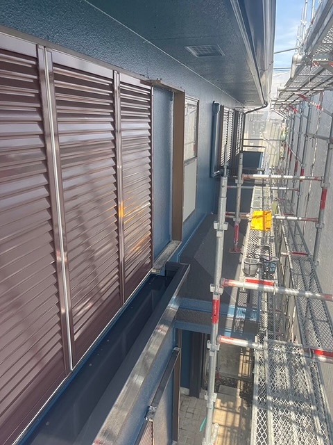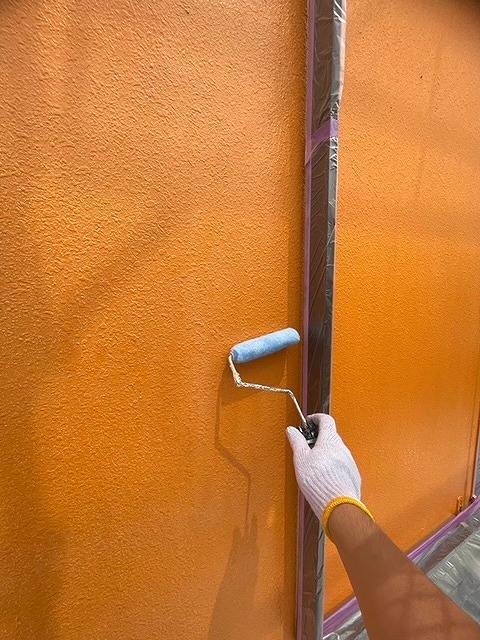 寄居町富田でモルタル外壁とブロック塗装。ひび割れ補修作業をしました。