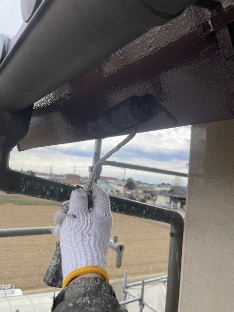 深谷市樫合で破風板(鼻隠し)塗装を行いました。傷んだ破風板には、破風板板金を取付け。
