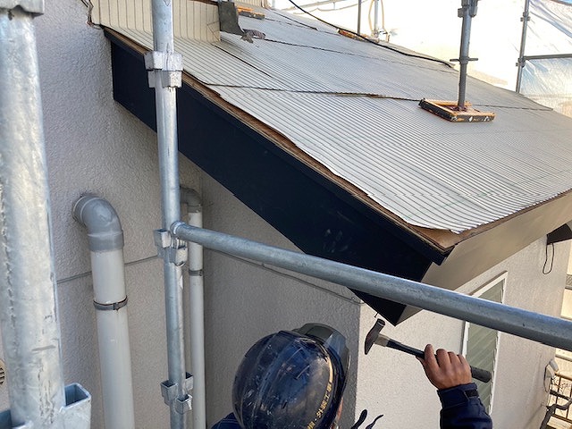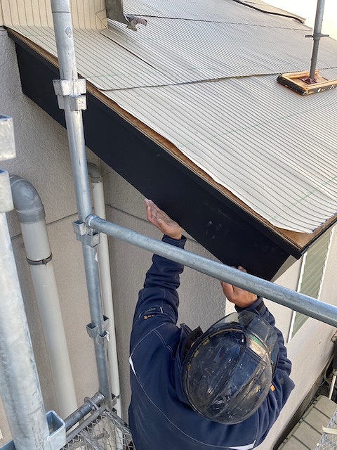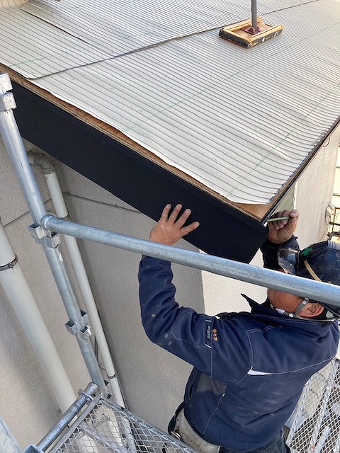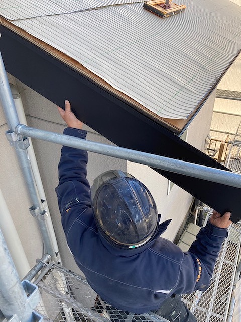 深谷市田谷で、傷んだ破風板にガルバリウム鋼板を取付けました。