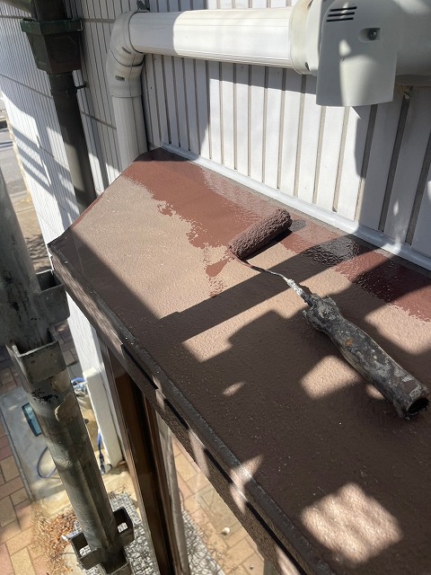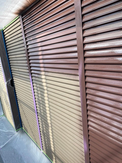 深谷市緑ヶ丘で外壁塗装中。作業もいよいよ大詰め!雨戸と出窓屋根を塗りました。