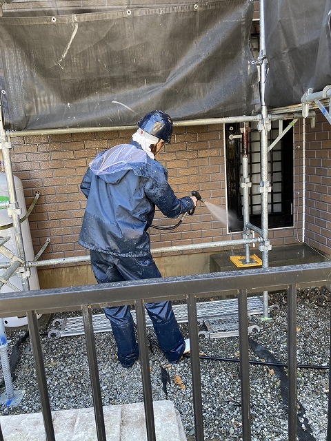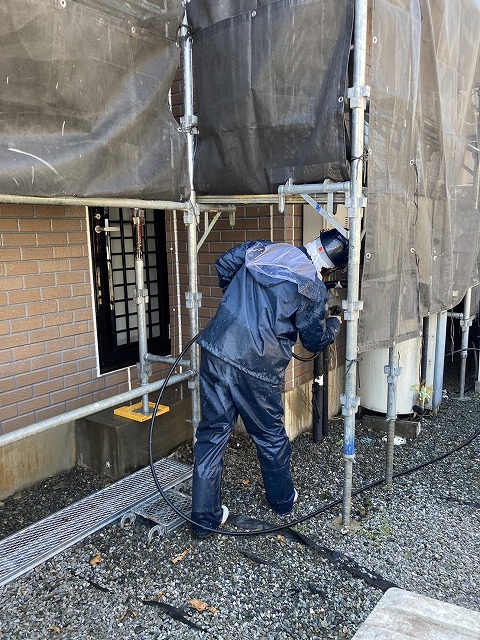 寄居町富田でモルタル外壁とブロック塗装。ひび割れ補修作業をしました。