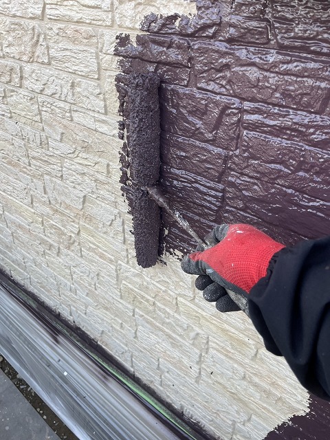 寄居町富田でモルタル外壁とブロック塗装。ひび割れ補修作業をしました。