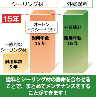 オートンイクシード15+なら、15年超の耐用年数を実現。外壁塗装に合わせて工事ができ、足場の仮設も1度で済みお得にメンテナンスができます。