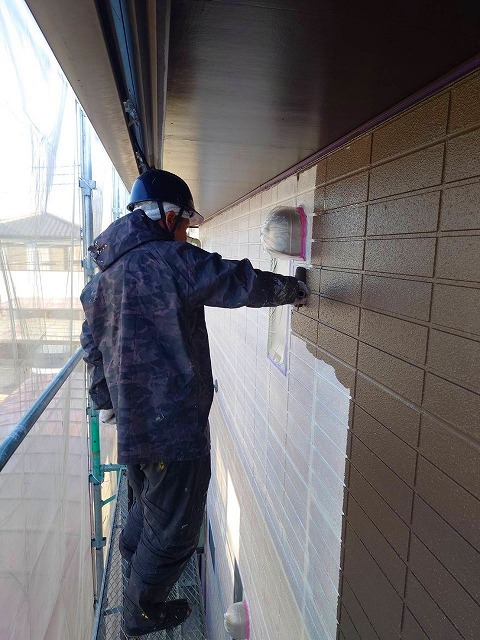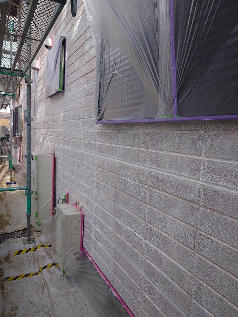 寄居町富田でモルタル外壁とブロック塗装。ひび割れ補修作業をしました。