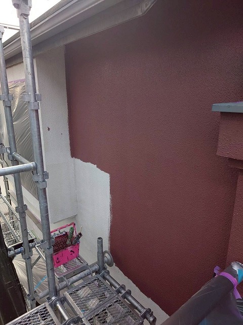寄居町富田でモルタル外壁とブロック塗装。ひび割れ補修作業をしました。