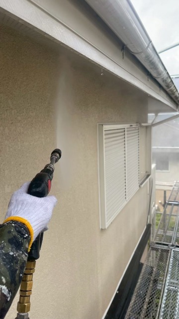寄居町富田でモルタル外壁とブロック塗装。ひび割れ補修作業をしました。