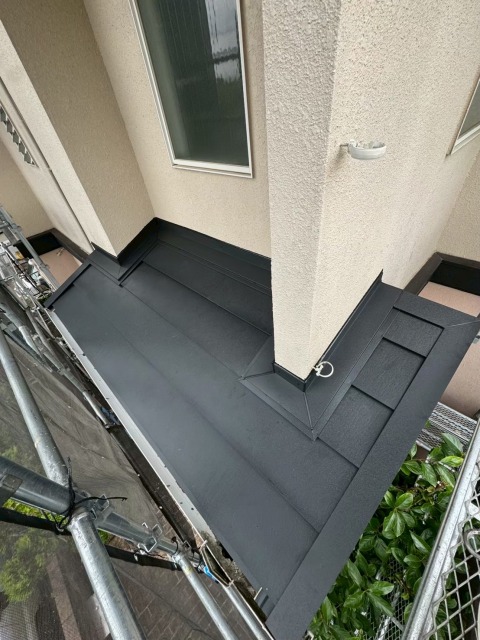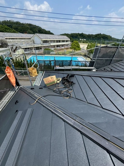 「最近はかなり暑いので、遮熱・断熱を塗装や、何か違う方法でできないものか」、「足場を立てるなら、もう当分の間は何もしないで良くなる組み合わせにしたい。この際、足場を使ってできることは全てやってしまいたい」と、ご相談をいただき、遮熱フッ素塗料を使用した外壁塗装工事、断熱効果が期待できる屋根カバー工事、雨樋交換工事をご提案し、ご依頼をいただきました。