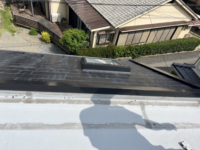 現地調査に伺い、屋上を点検すると、経年劣化は見られるものの、屋上のシート防水に浮きや膨れ・剥がれ・亀裂や切れは見られませんでした。