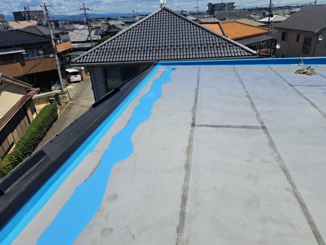深谷市で屋上防水工事。シート防水を長寿命化させる為のウレタン防水。