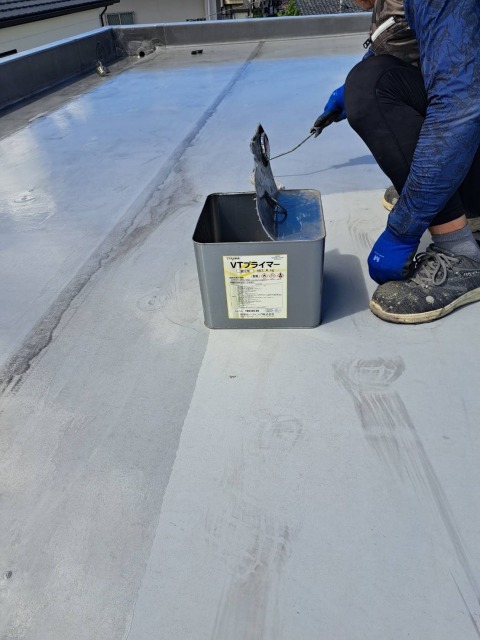 深谷市上柴町東でウレタン防水作業を施工中。以前、バルコニー下のお部屋に、雨漏り経験あり。