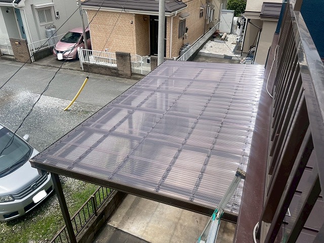 他、雨樋交換、ベランダ床の張替えやカーポートのポリカ波板張替え等、「足場を立てて工事するなら、当分外装は何もやらないで良いようにして!」というご希望に、全てお応えするご提案をさせていただきました。