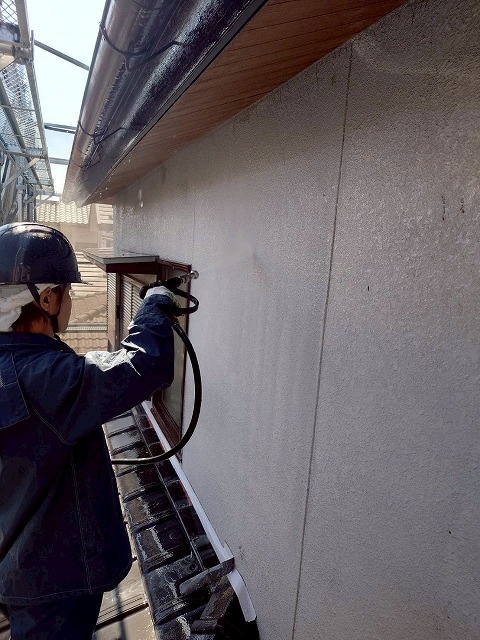 寄居町富田でモルタル外壁とブロック塗装。ひび割れ補修作業をしました。
